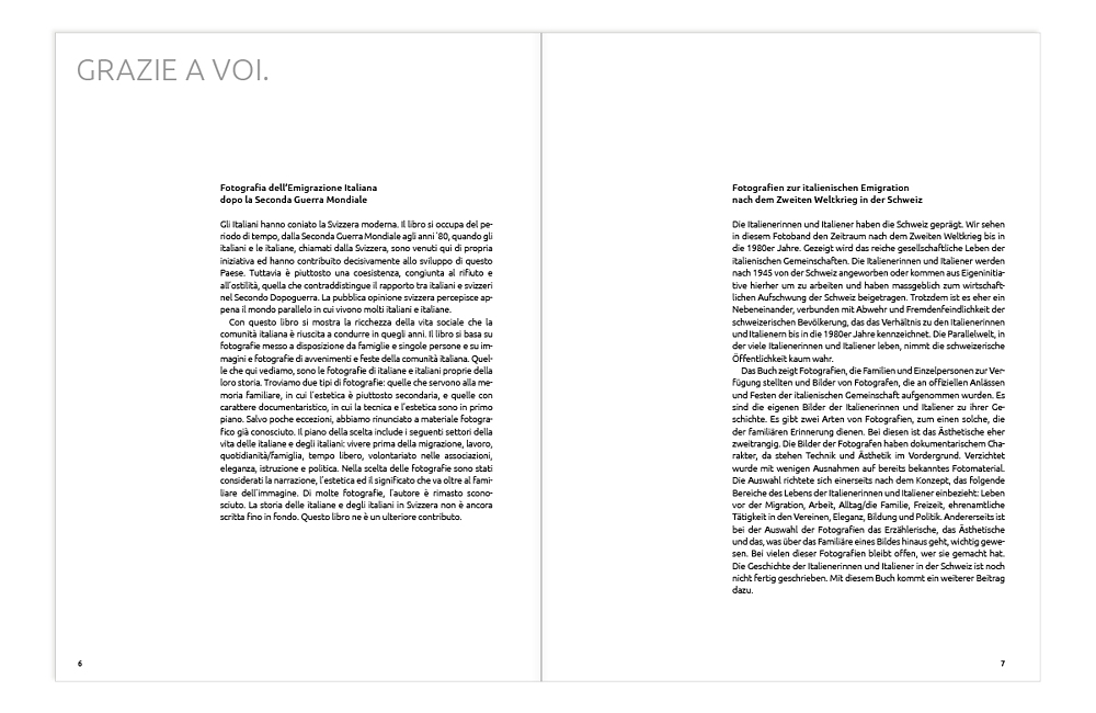 «Grazie a Voi.» das Buch zur Ausstellung «Ricordi e Stima» –Fotografien zur italienischen Migration in der Schweiz. 240 Seiten,