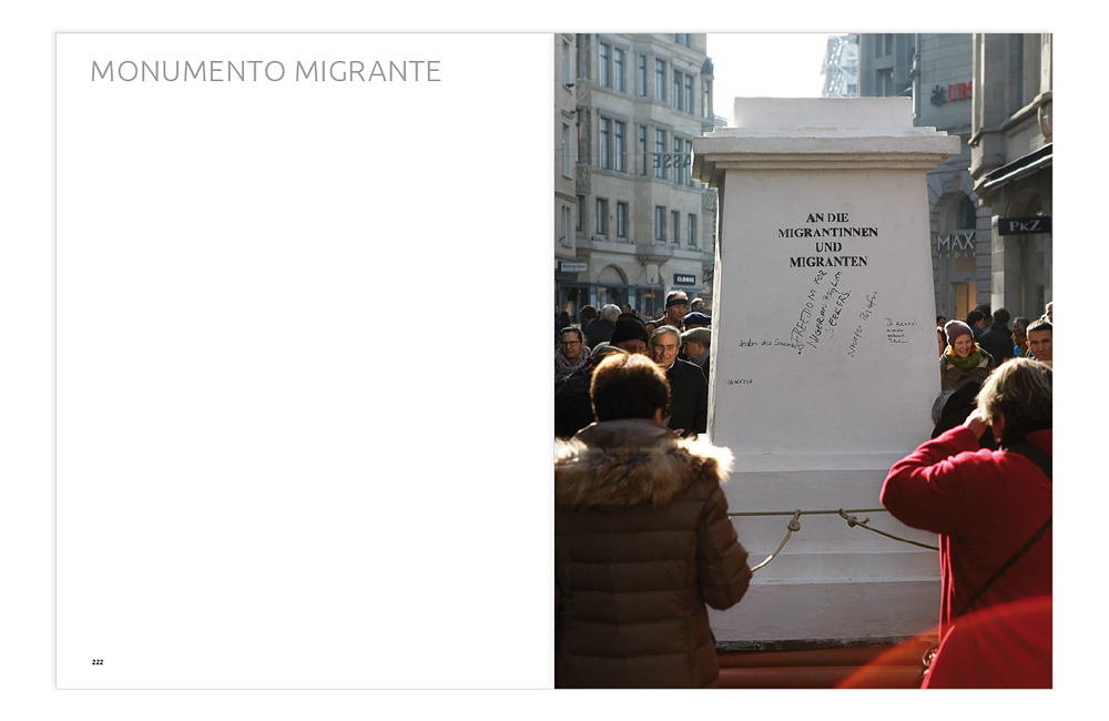 Doppelseite zur Intervention «Monumento Migrante»